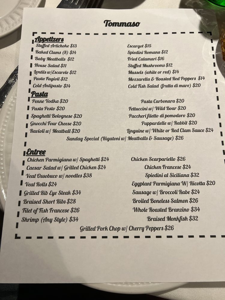 Tommaso Restaurant in Brooklyn, NY offers a delightful Italian dining experience. Customers praise the friendly staff, exquisite food, and charming ambiance. Reviews highlight the exceptional service, delectable dishes like Baked Clams, Fried Calamari, and authentic Italian options like Fettuccini with Wild Boar and Pappardelle with Rabbit. The menu, known for its variety and quality, includes pasta, filet francese, rice balls, and garlic onion bread. The restaurant is commended for its romantic setting, good for groups or kids, and offers catering services. With a full bar, outdoor seating, and even live singing of Italian songs on Saturdays, Tommaso Restaurant is a top choice for a memorable dining experience.
